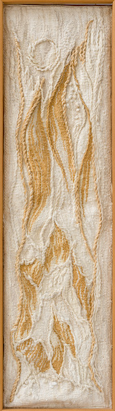 The "100 000" is an example of Kuchta’s experimentation combining different materials. The work of art can be interpreted as both a suspended, decorative image and a spatial object. The superimposed tabs are reminiscent of the close superimposition of human skin cells. The feeling of the appearance of the skin is given by the silky pink hue of the flaps and the veined, hairy texture of the material. This hairy structure goes back to Kuchta’s experiments with hair, in which the artist examined hair and hair as a defining element of the conventional aesthetics of Western society, an essential accessory of beauty and hygiene.